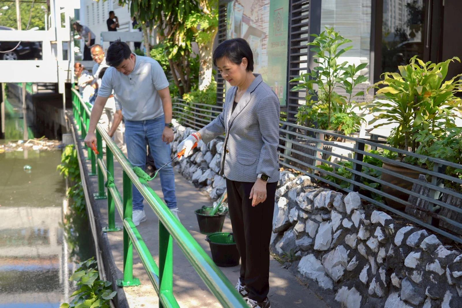 นอกจากนี้ ตัวแทนพนักงานจิตอาสา ยังได้ร่วมกันทำความสะอาดและทาสี พร้อมสำรวจระบบไฟฟ้าให้แสงแสงสว่างบริเวณทางเดิน-ทางจักรยานลอดสะพานข้ามคลองลาวใหม่ ถนนพระราม 9 รวมระยะทางประมาณ 700 เมตร ซึ่งเป็นเส้นทางสัญจรของประชาชนที่อาศัยอยู่ในชุมชนบริเวณคลองลาว ณ ศูนย์การค้าเดอะไนน์ เซ็นเตอร์ พระราม 9