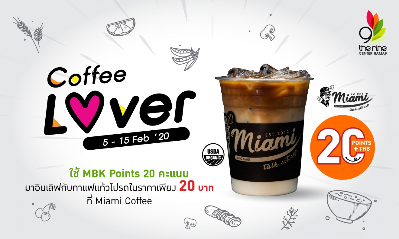 ใช้ MBK Point 20 คะแนน แลกซื้อกาแฟแก้วโปรดได้ในราคา 20 บาท ที่ Miami Coffee