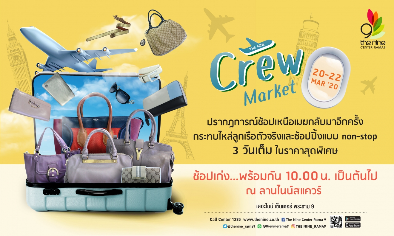 ปรากฏการณ์ช้อปเหนือเมฆกลับมาอีกครั้ง!! ‘Crew Market’ กระทบไหล่ลูกเรือตัวจริงและช้อปปิ้งแบบ non-stop 3 วันเต็ม ในราคาสุดพิเศษ ช้อปเก่ง..พร้อมกัน 20 – 22 มีนาคม 63 ตั้งแต่ 10 โมงเป็นต้นไป ณ ลานไนน์สแควร์ เดอะไนน์ เซ็นเตอร์ พระราม 9